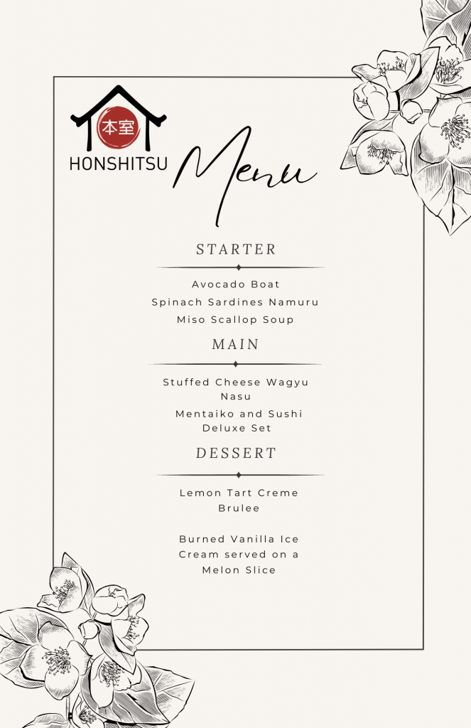 For more information, you can also email us at ask@honshitsu.com or WhatsApp us at +65 8443 9914. The booking for Private Dining Service must be 1 week in advance minimum. Alternatively you can also fill the form below and we will get back to you in 24 hours.